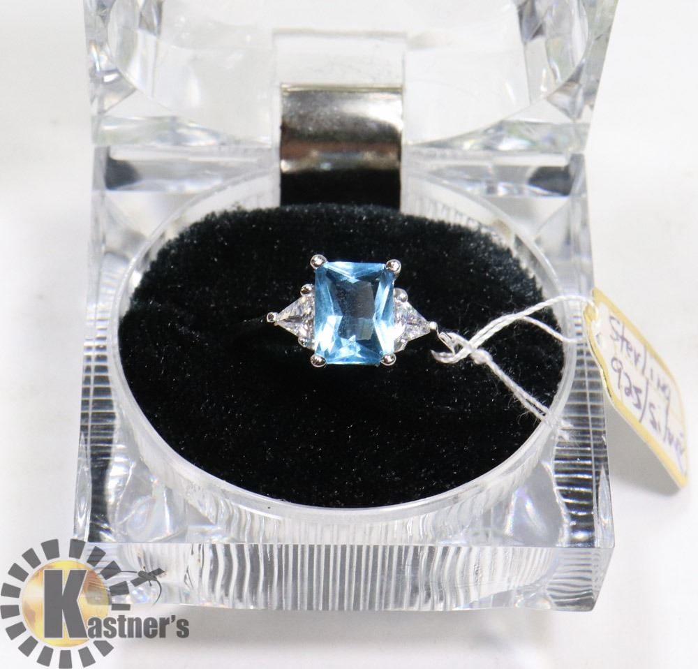 NEW STERLING SILVER BLUE CUBIC STONE RING SIZE 8.