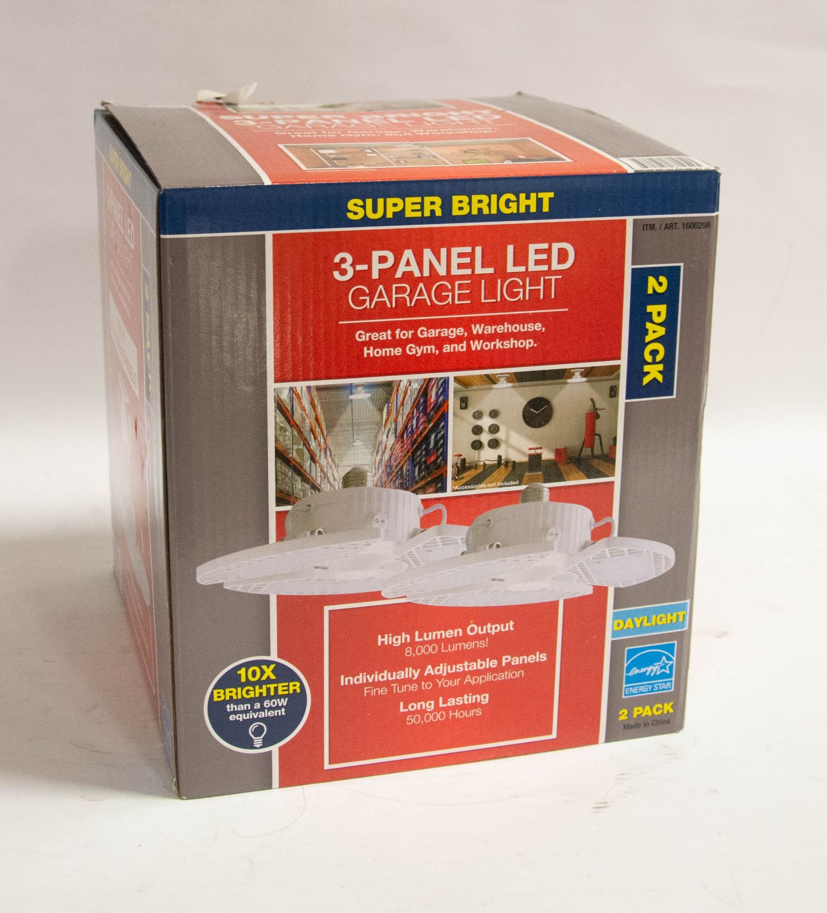 NEW SUPER BRIGHT 3-PANEL LED GARAGE LIGHT, 2-PACK