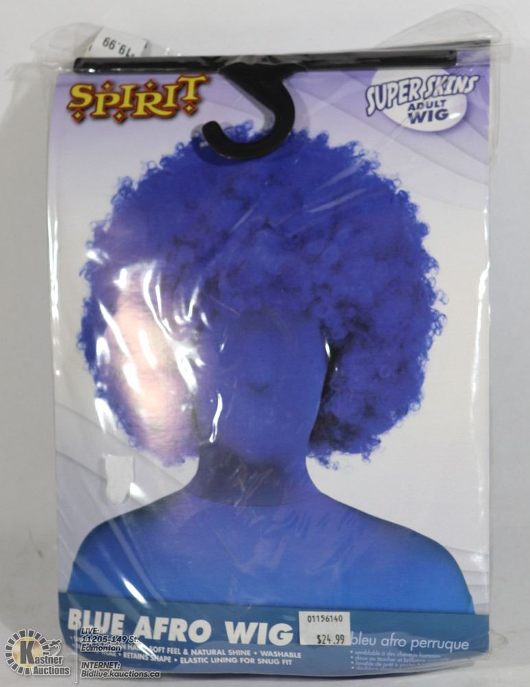 NEW SUPER SKINS ADULT HALLOWEEN WIG; BLUE AFRO,