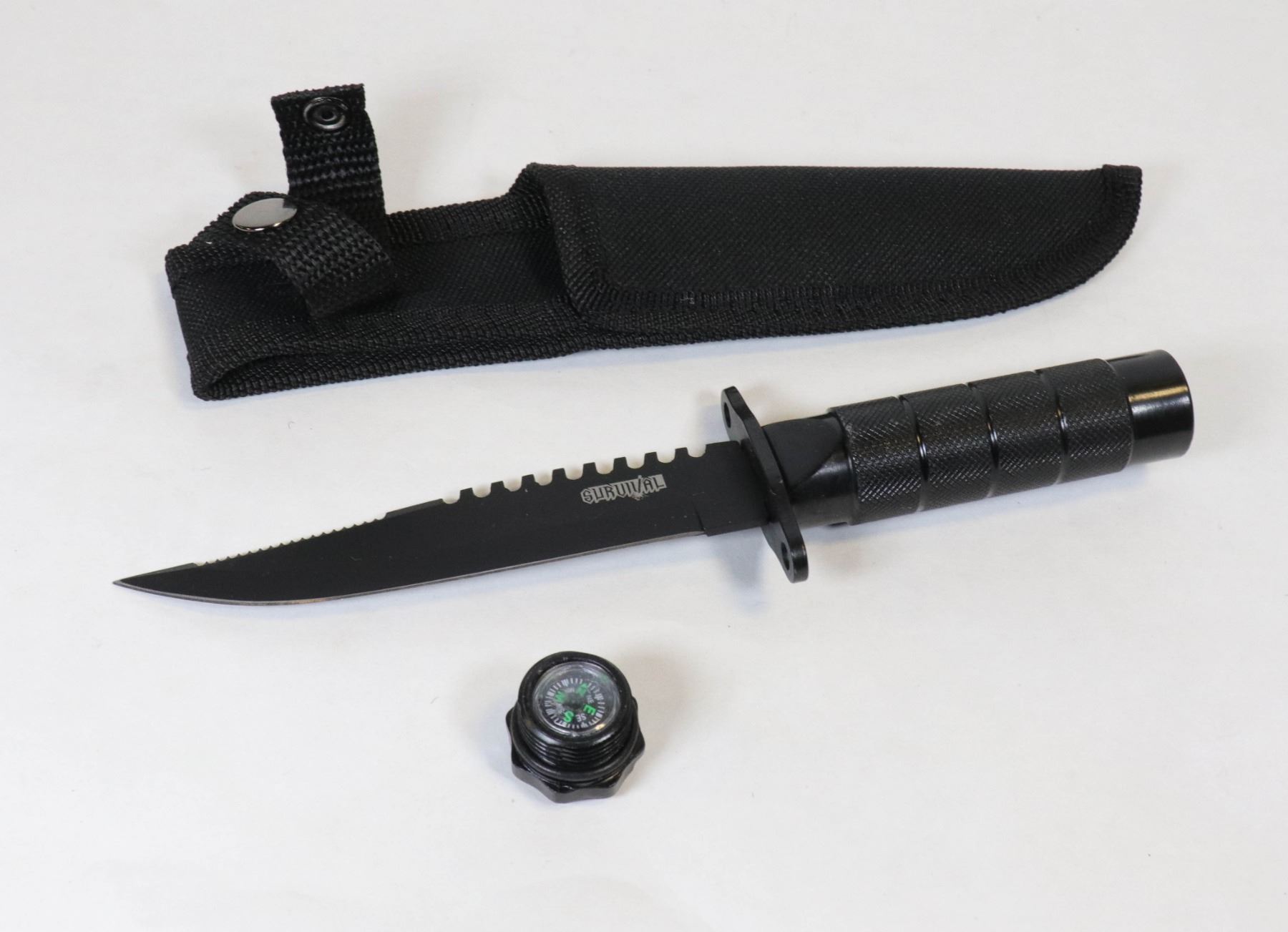 NEW SURVIVAL KNIFE W/ A COMPASS AT ONE END