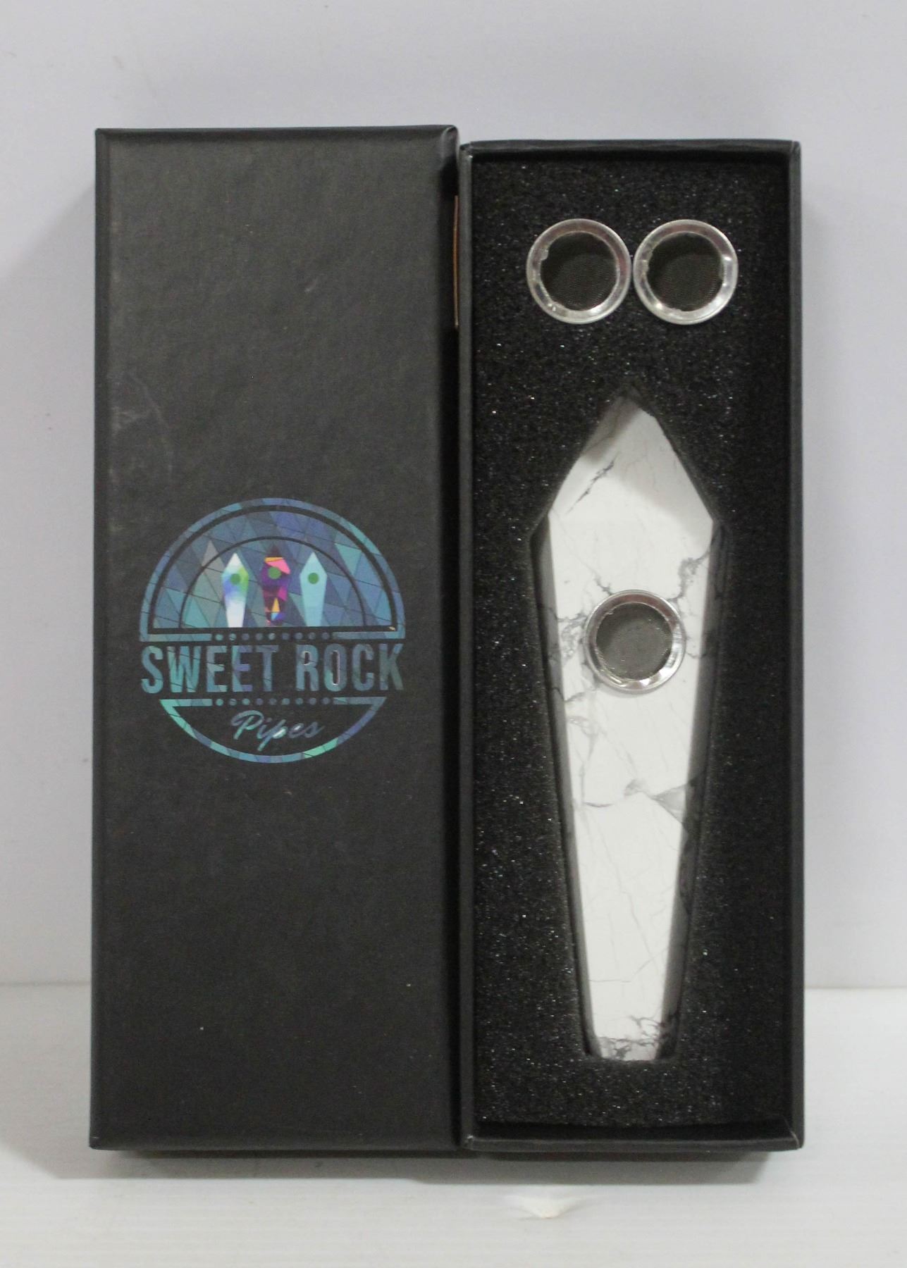 NEW SWEET ROCK STONE PIPE W/ SCREENS; WHITE MARBLE