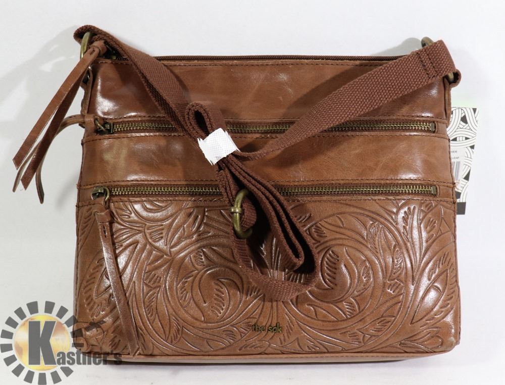 WITH TAGS. LEAF EMBOSSED. GENUINE LEATHER. MSRP. $149 USD. AUTHENTIC. FASHION