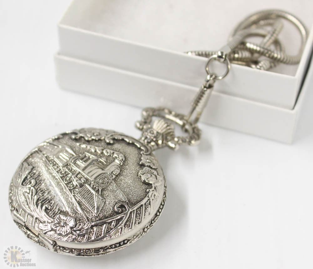 NEW TRAIN POCKET WATCH WITH CHAIN