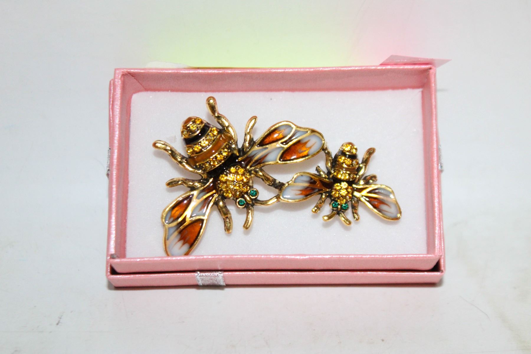 NEW TWIN BEE BROOCH ENAMEL, RHINESTONE