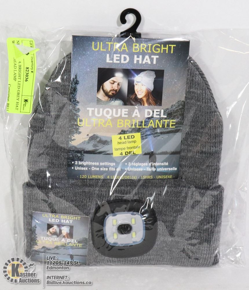 NEW ULTRA BRIGHT LED GREY HAT W/ 4 LED HEAD LAMP