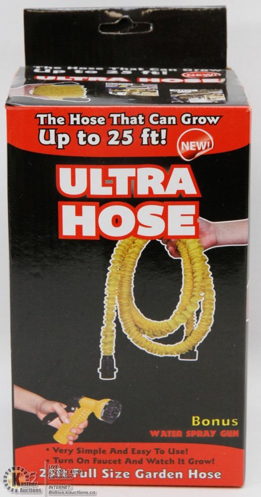 WITH WATER SPRAY GUN. THE HOSE THAT CAN GROW UP TO 25 FEET!