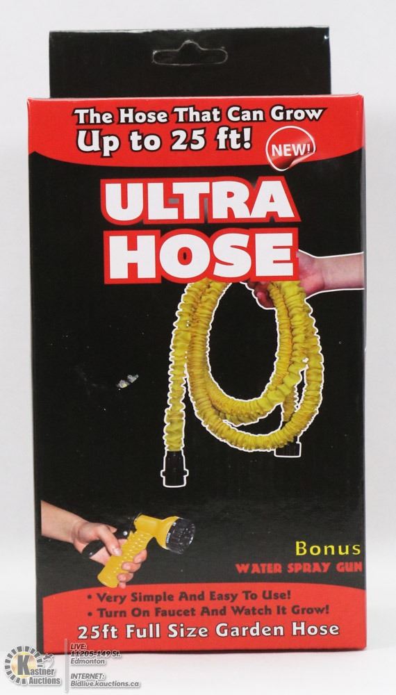 WITH WATER SPRAY GUN. THE HOSE THAT CAN GROW UP TO 25 FEET!