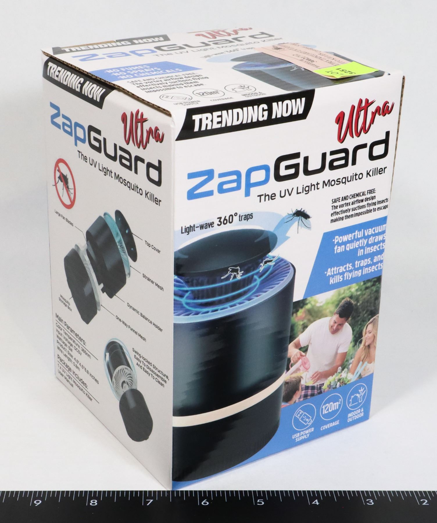 POWERFUL VACUUM FAN DRAWS IN INSECTS. 120M SQUARE COVERAGE. USB POWERED. INDOOR/OUTDOOR US