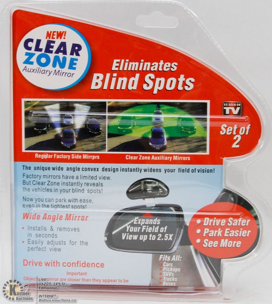 ELIMINATES BLIND SPOTS! INSTALL IN SECONDS! EASILY ADJUSTABLE, WIDE ANGLE MIRROR.