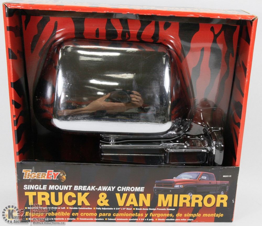 BREAK AWAY CHROME, MOUNTS ON RIGHT OR LEFT, FULLY ADJUSTABLE 9¾" X 6" HEAD, BREAK-AWAY DESIGN PREVENTS DAMAGE.