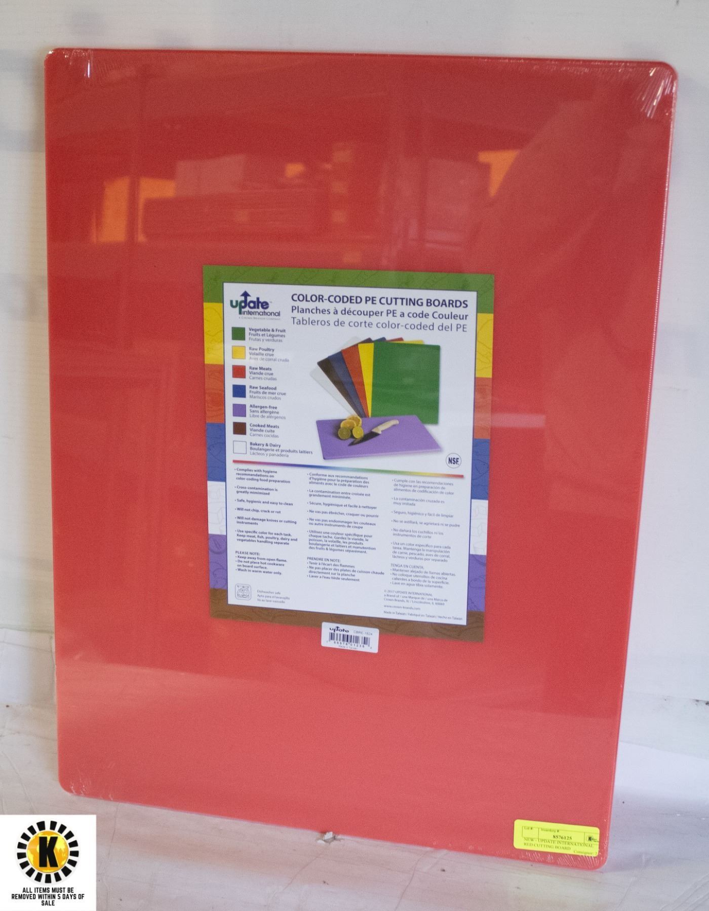 COLOUR CODED FOR RAW MEAT, DISHWASHER SAFE, NSF APPROVED 18"X24"X1/2"***ALL EQUIPMENT WILL HAVE A 15 DAY WARRANTY, STARTING AT THE END OF THE AUCTION. SUBJECT TO TERMS AND CONDITIONS, MUST HAVE A PROOF OF A NON WORKING ITEM.***