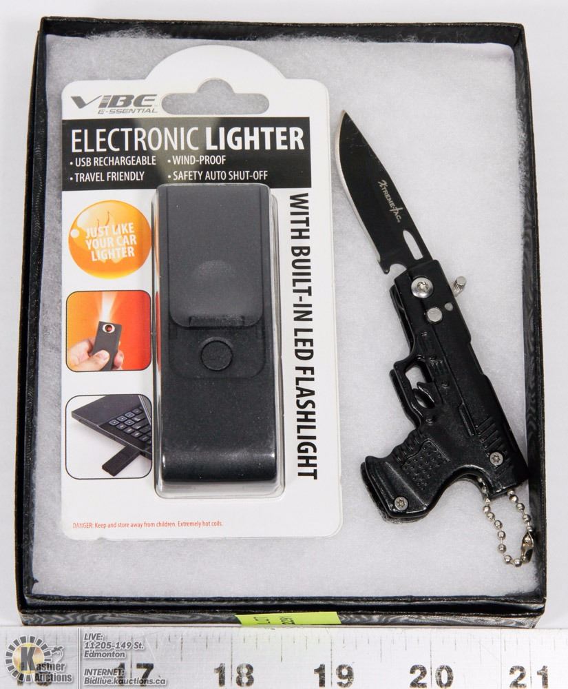 LED FLASHLIGHT SOLD W/ PUNISHER KEY CHAIN FOLDING KNIFE