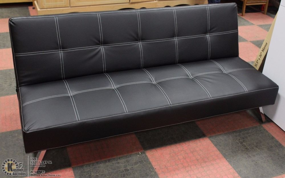 NEW WALLACE BLACK LEATHERETTE FOLD DOWN FUTON