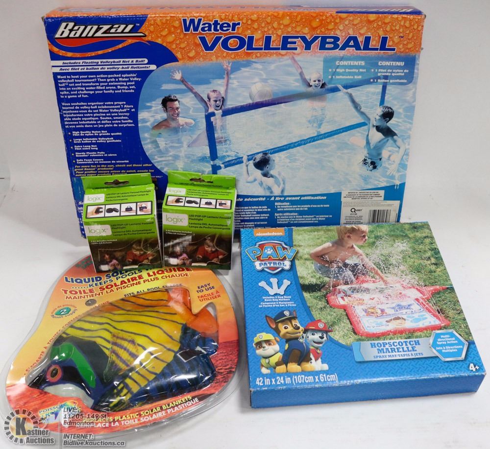 HOPSCOTCH SPRAY MAT, 2 LED POP UP LANTERNS & TROPICAL FISH LIQUID SOLAR BLANKET FOR POOLS