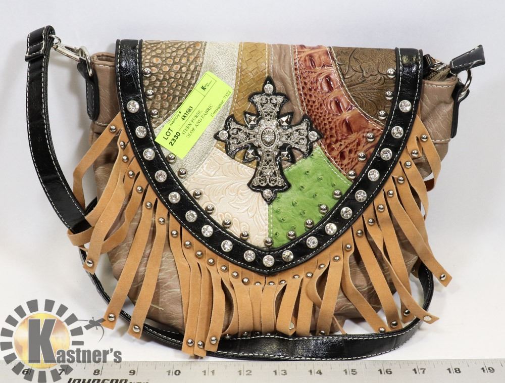 NEW WESTERN PURSE, MULTI-COLOR AND FABRIC