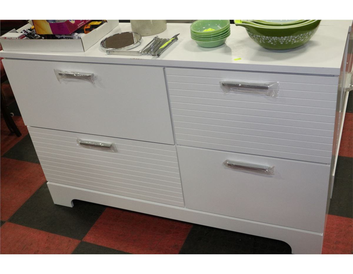 NEW WHITE 4 DRAWER 55" DRESSER AS THEY COME