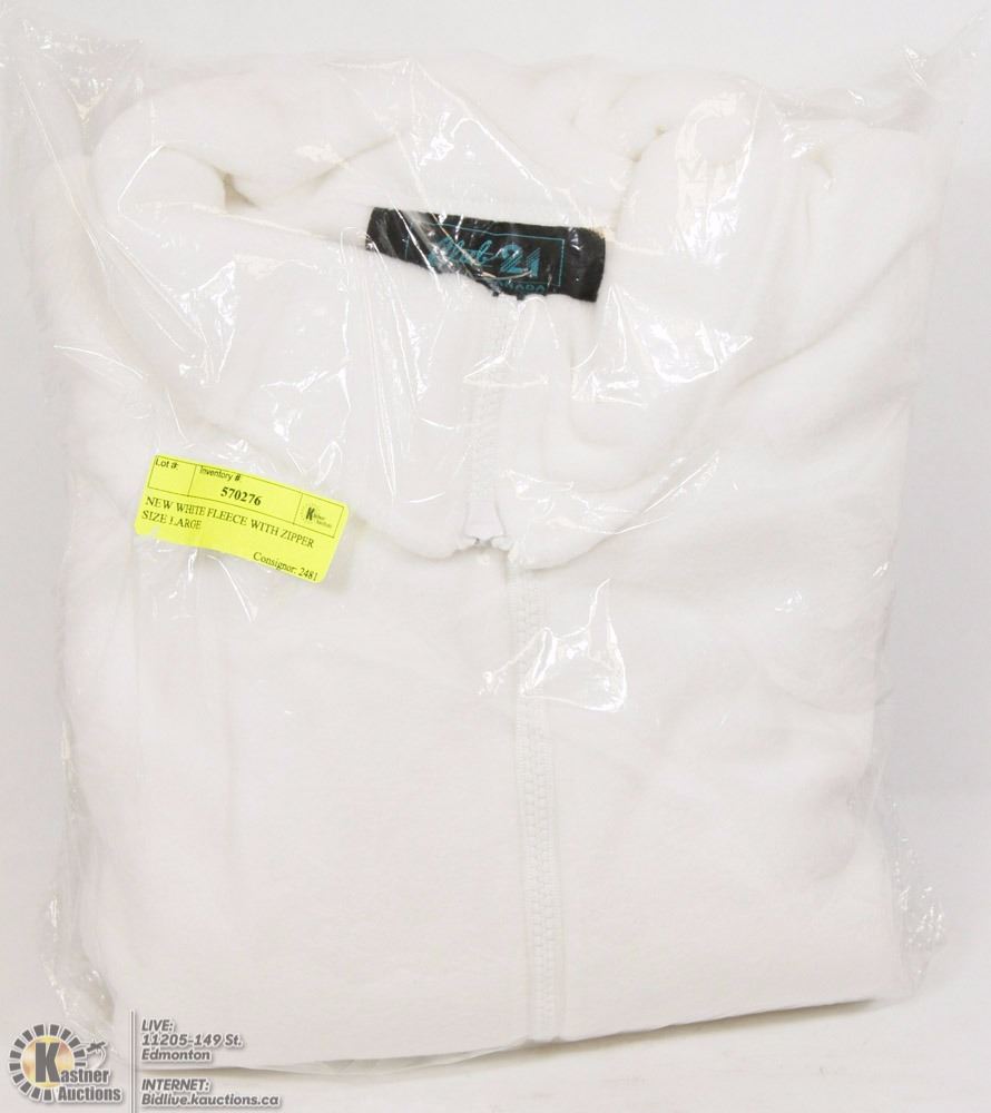 NEW WHITE FLEECE WITH ZIPPER SIZE LARGE