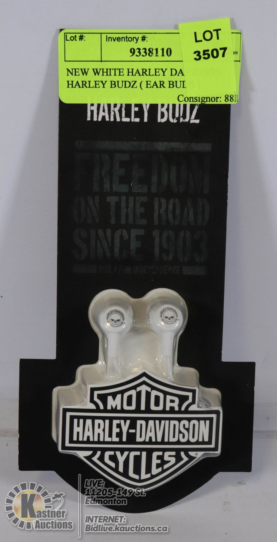 NEW WHITE HARLEY DAVIDSON HARLEY BUDZ ( EAR BUDS )
