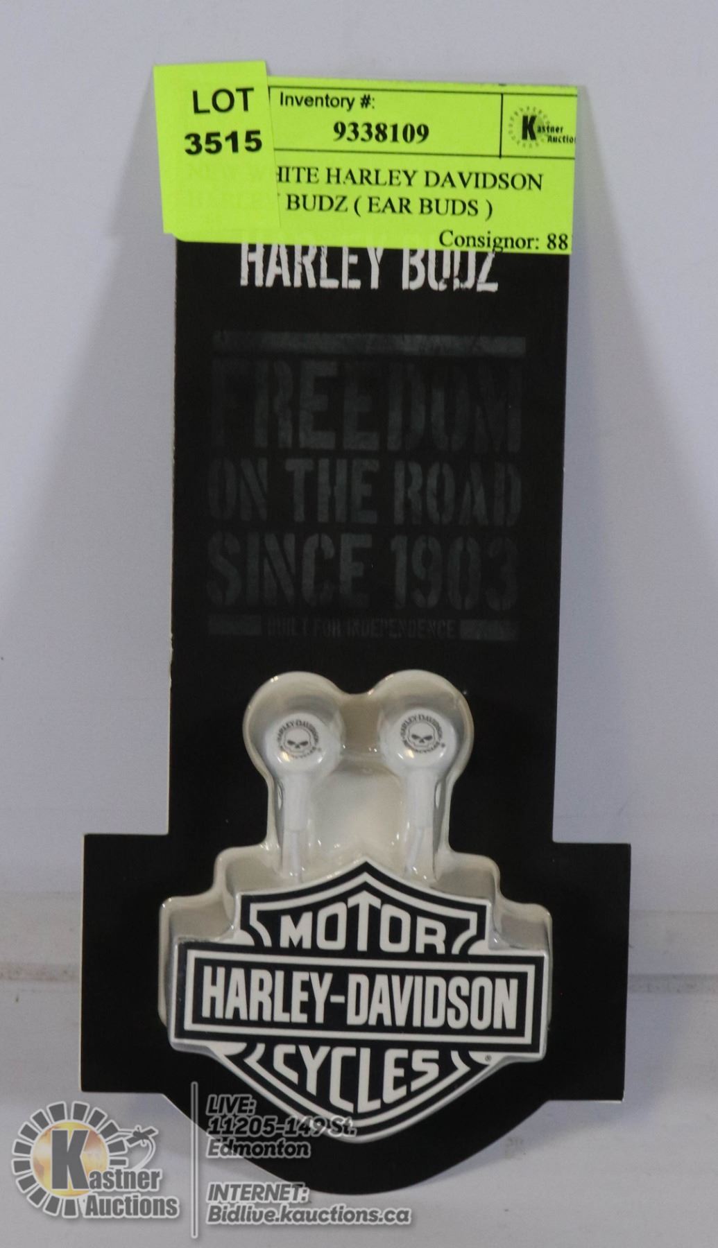 NEW WHITE HARLEY DAVIDSON HARLEY BUDZ ( EAR BUDS )