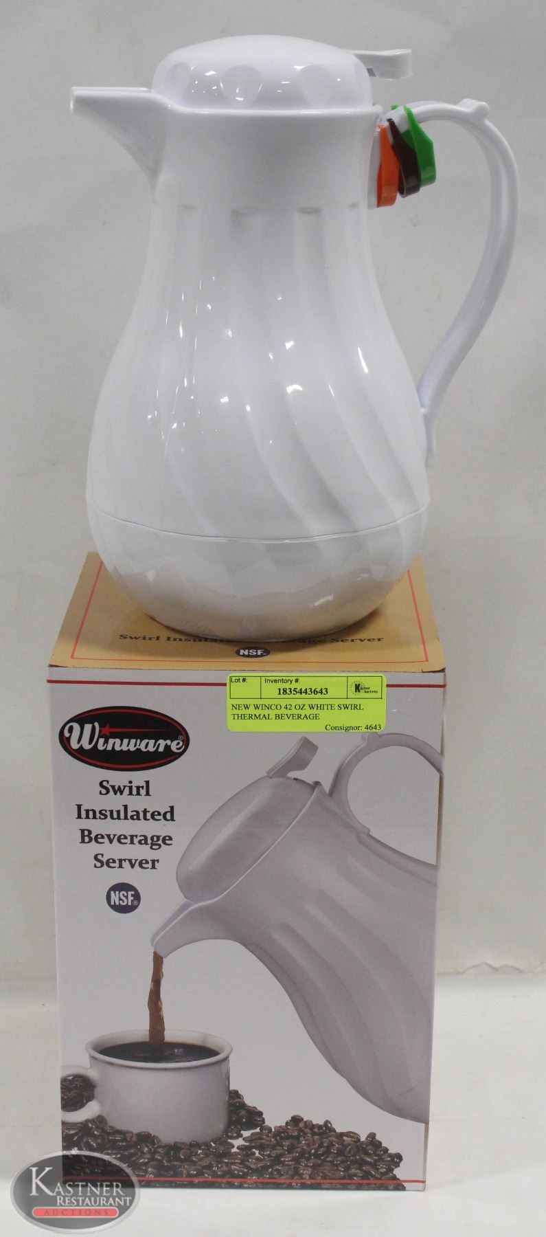NEW WINCO 42 OZ WHITE SWIRL THERMAL BEVERAGE