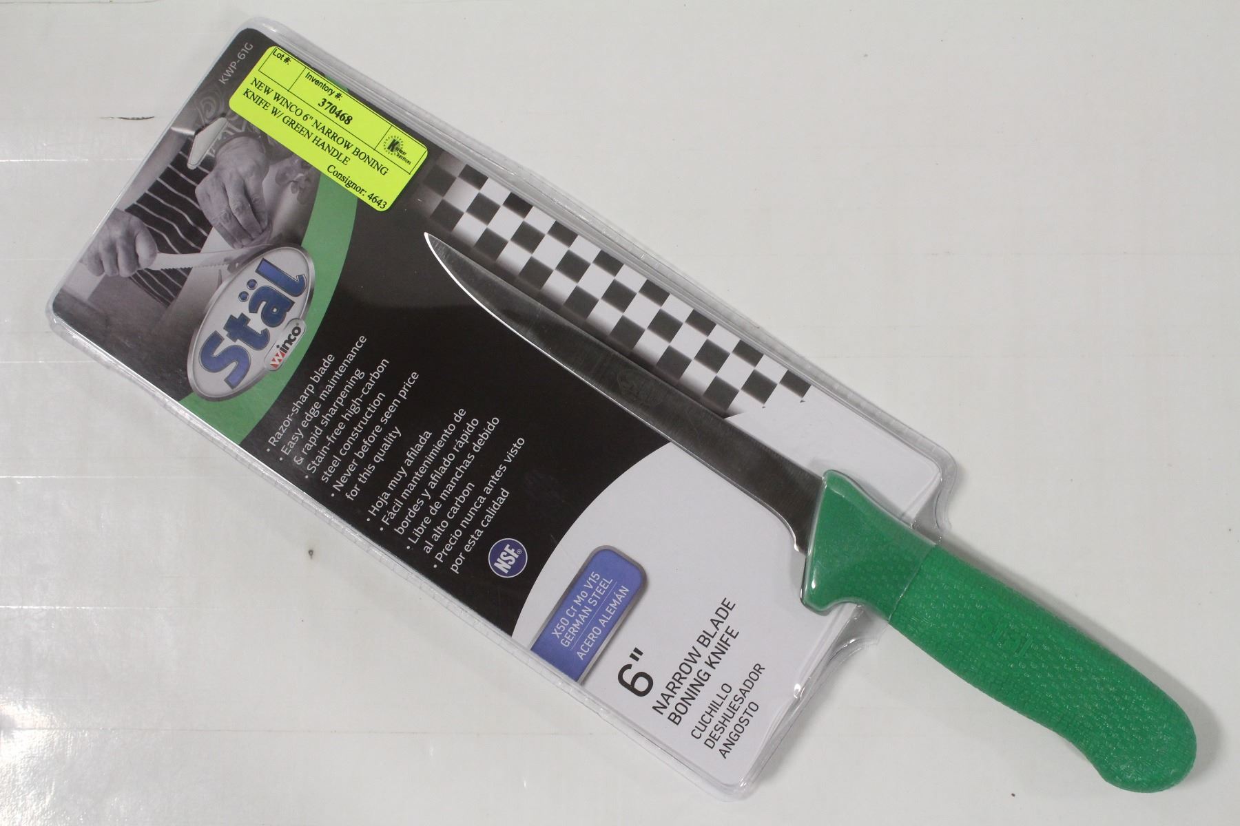 NEW WINCO 6" NARROW BONING KNIFE W/ GREEN HANDLE
