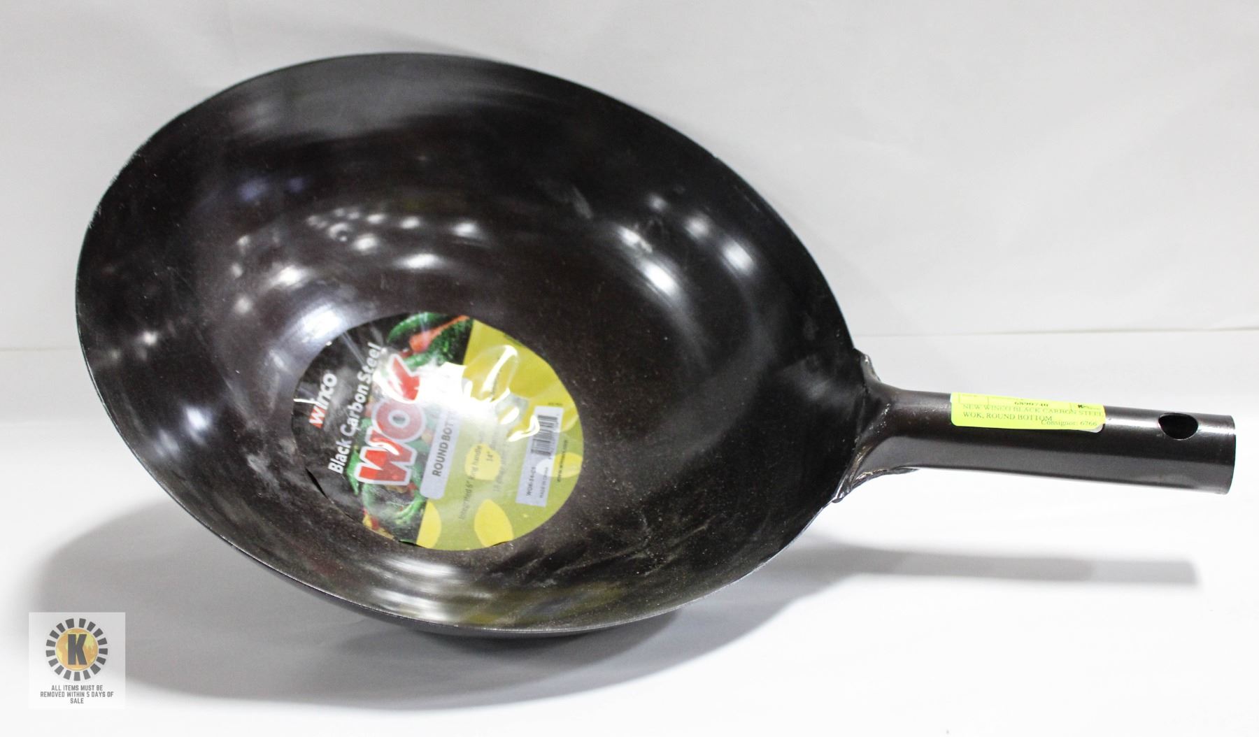 NEW WINCO BLACK CARBON STEEL WOK, ROUND BOTTOM