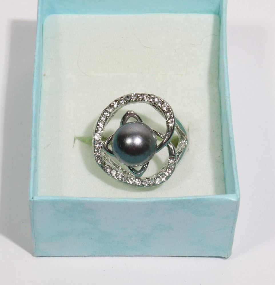 NEW WOMAN'S DESIGNER RING W/GREY CULTURED PEARL
