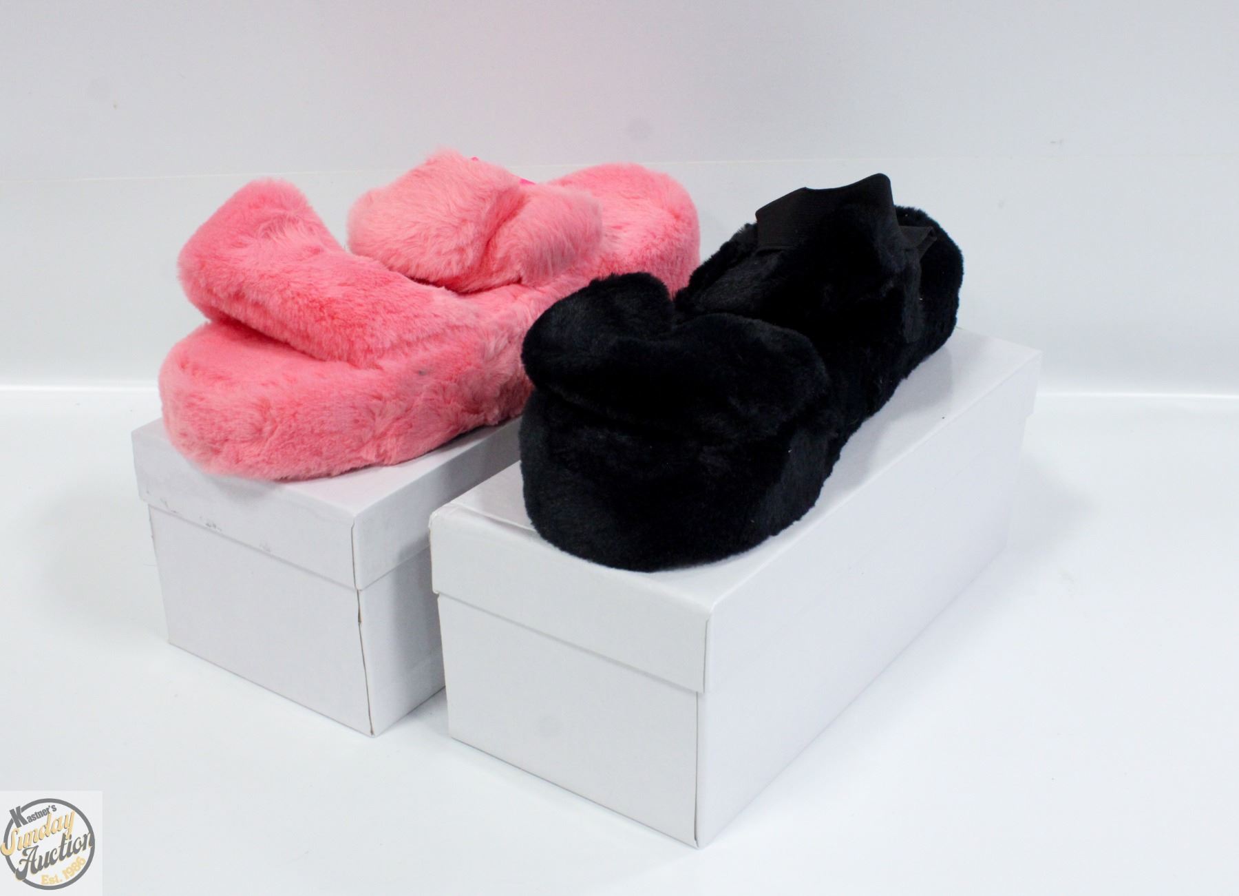 NEW WOMEN'S FUZZY SLIPPERS 1PINK 1 BLACK SIZE 6