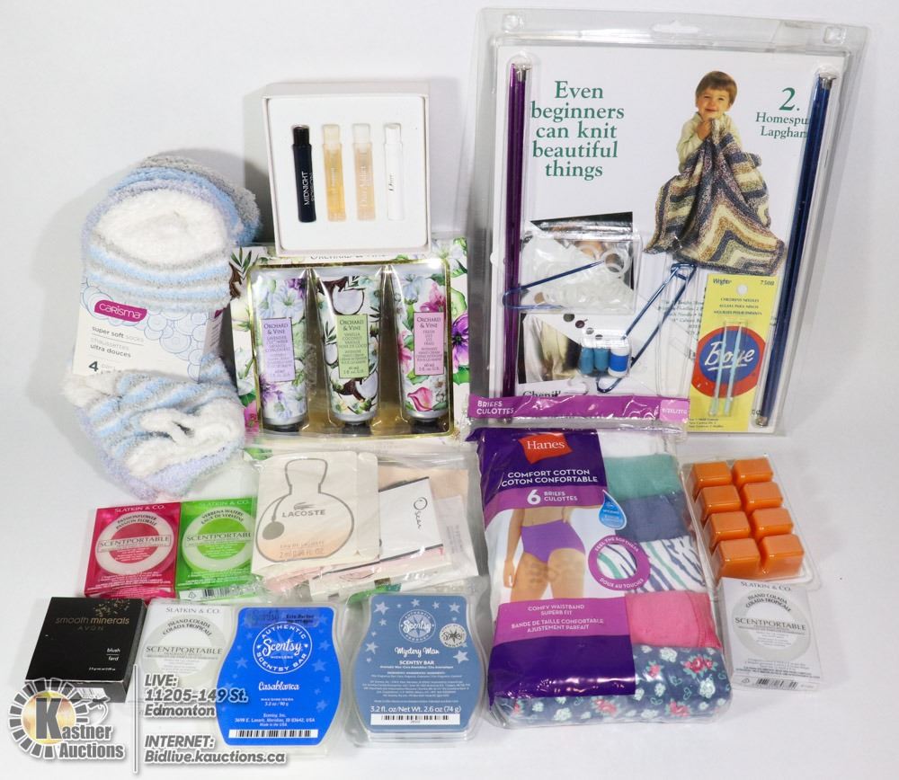6 PACK 2 XL, ORCHARD INTENSIVE HAND CREAM 3 PACK, PERFUME SAMPLES, KNITTING KIT, COZY SOCKS & MORE. WELLNESS