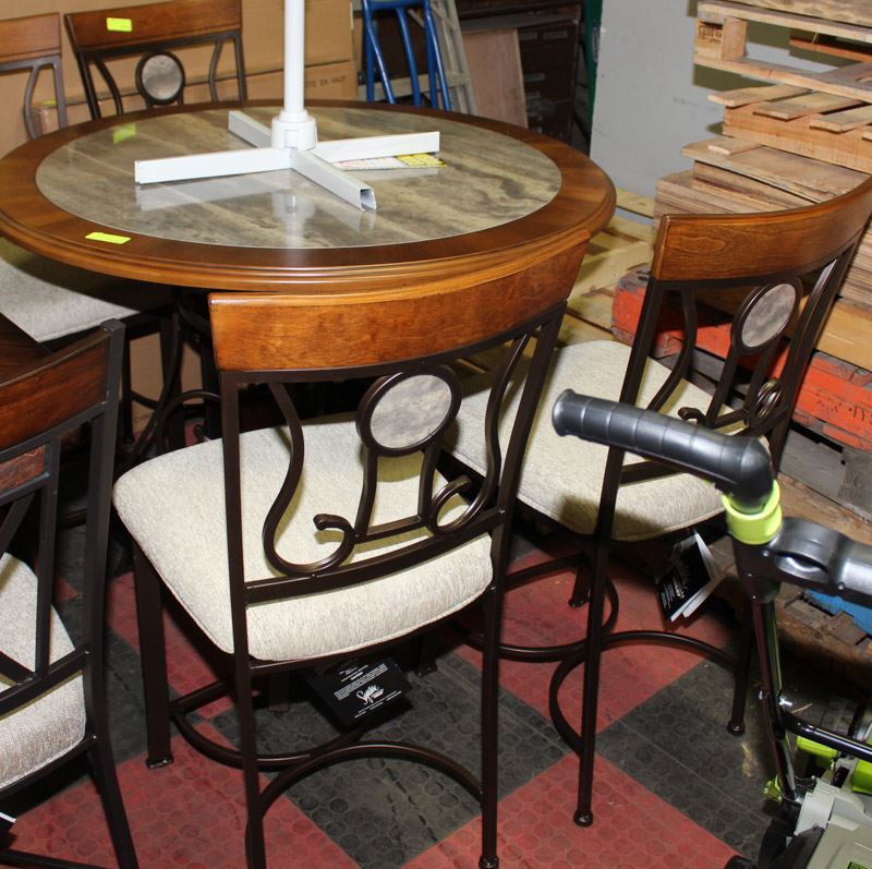 NEW WOOD AND STONETOP BAR TABLE W 4 STOOLS