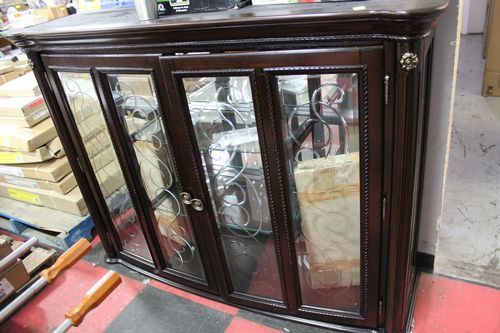 NEW WOOD HUTCH TOP W ETCHED GLASS