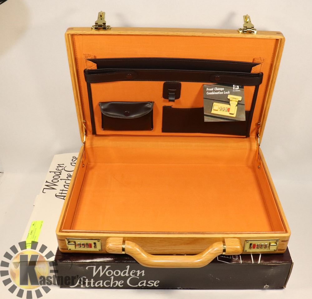 12" X 17" FULLY FUNCTIONAL BEECHWOOD BRIEFCASE WITH METAL ADJUSTABLE COMBINATION LOCKS. HOUSEHOLD.
