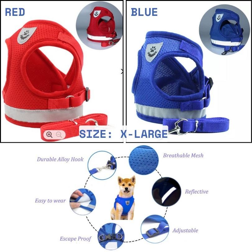 SIZE X-LARGE X2 (1 RED + 1 BLUE) CHEST GIRTH (47CM - 52CM) COMFORTABLE AND SOFT, ADJUSTABLE VELCRO AND CLIPS, REFLECTIVE STRIPS FOR NIGHT SAFETY