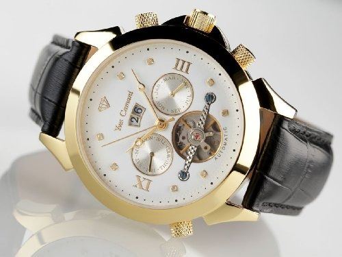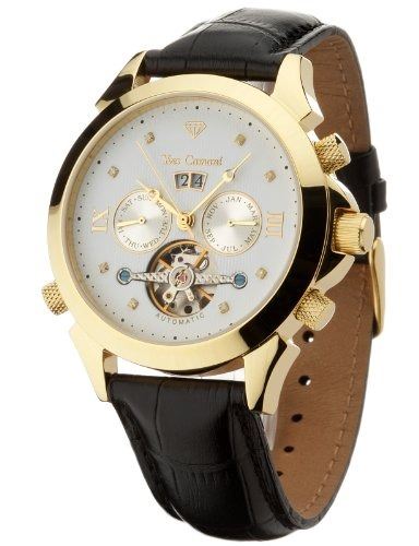 AUTOMATIC WATCH W/ MONTH/DAY CHRONOGRAPHS & DATE. GENUINE LEATHER BAND. MSRP 299. JEWELLERY