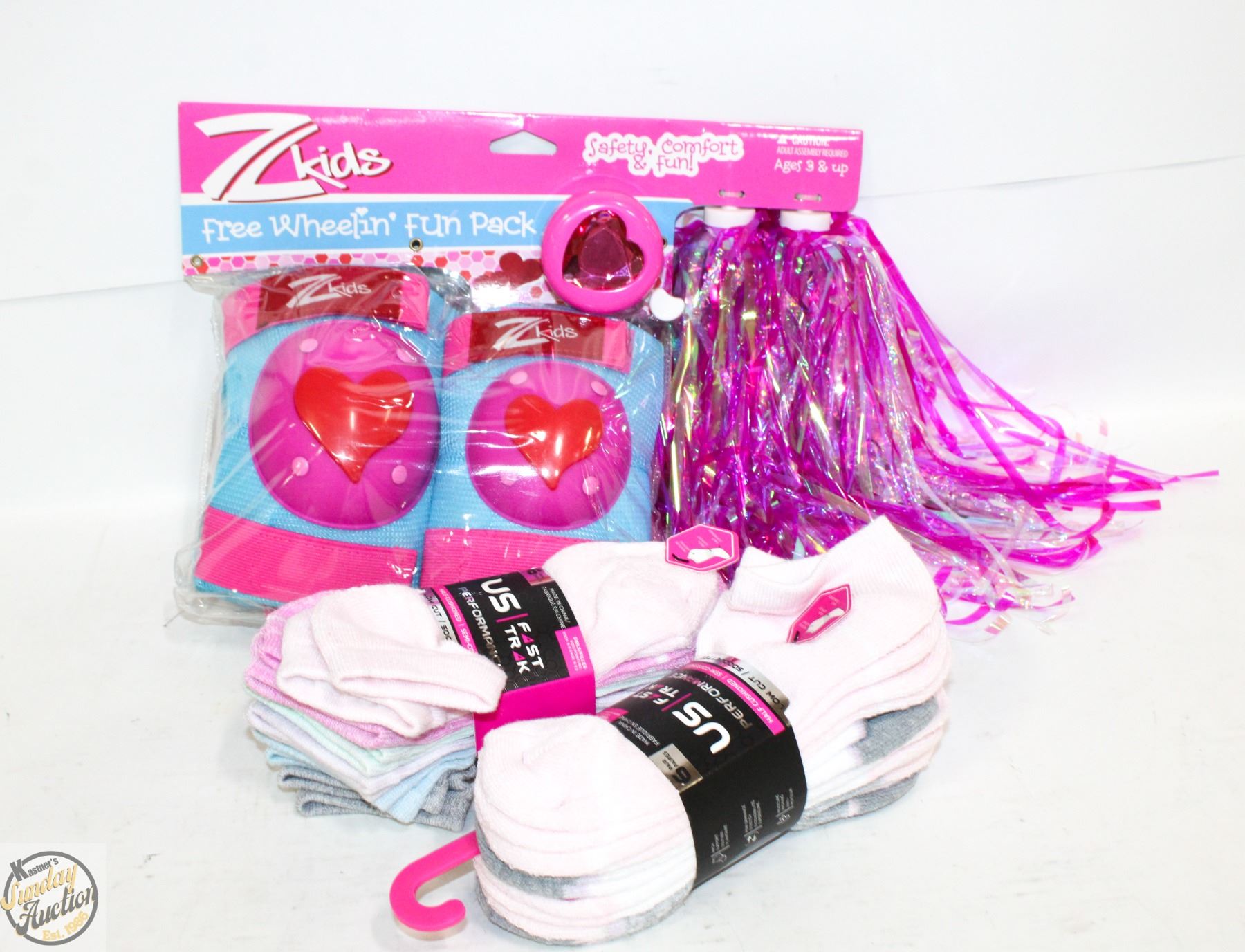 FUNPACK FOR BIKES W/NEW 12 PAIR GIRLS HALF-CUSHION SOCKS SIZE 6-8**ALL ITEMS MUST BE REMOVED BY 5PM SATURDAY, JULY 19TH 2025. ALL REMAINING ITEMS WILL BE SUBJECT TO A $6.00 PER DAY STORAGE CHARGE. ANY ITEMS REMAINING AFTER MONDAY, AUGUST 4TH, 2025 WILL BE CONSIDERED FORFEITED. NO REFUNDS WILL BE ISSUED FOR FORFEITED ITEMS. TO SCHEDULE A PICK UP APPOINTMENT CLICK HERE