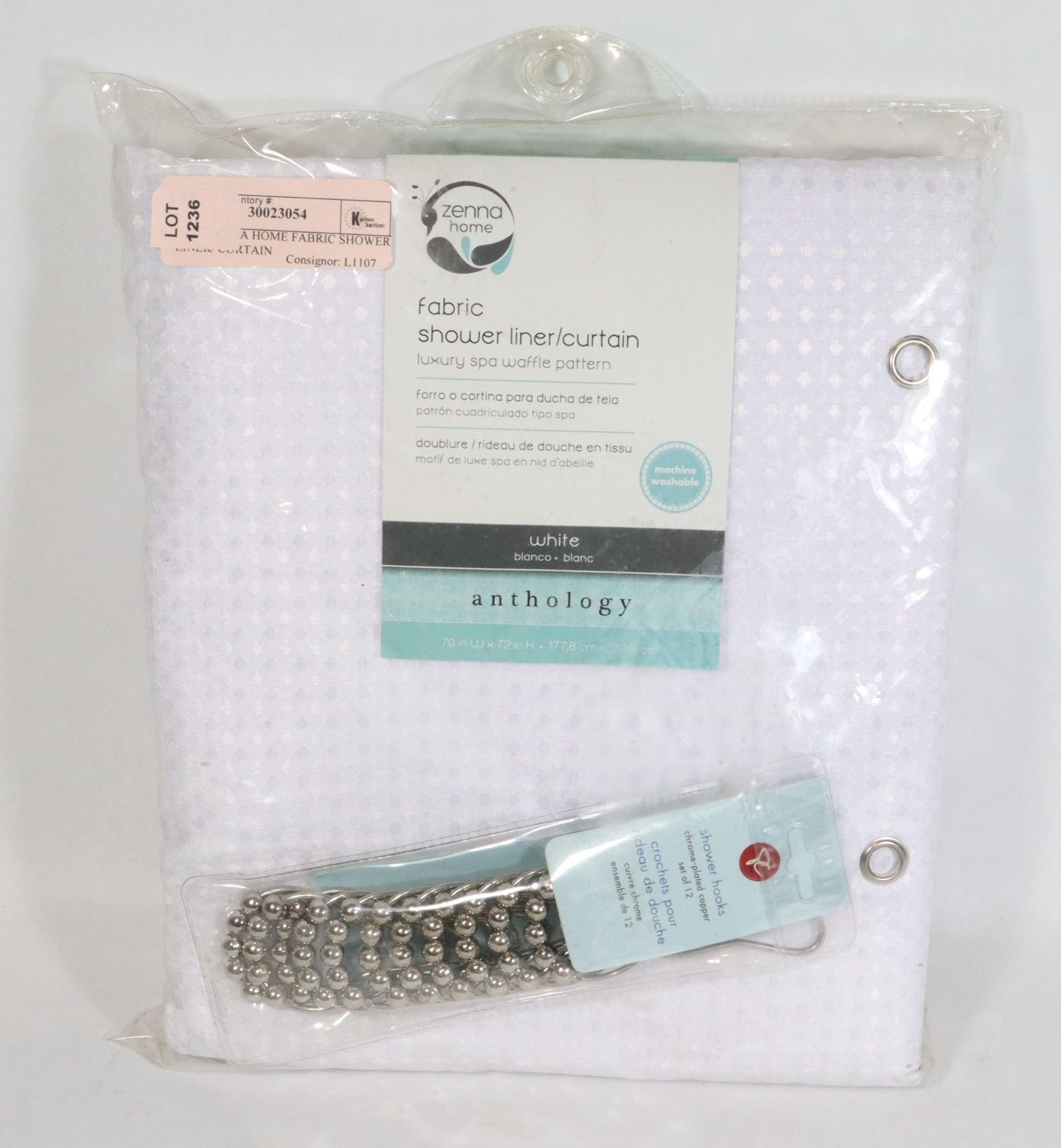 WITH PC SHOWER HOOKS. CURTAIN 70" W X 72" H