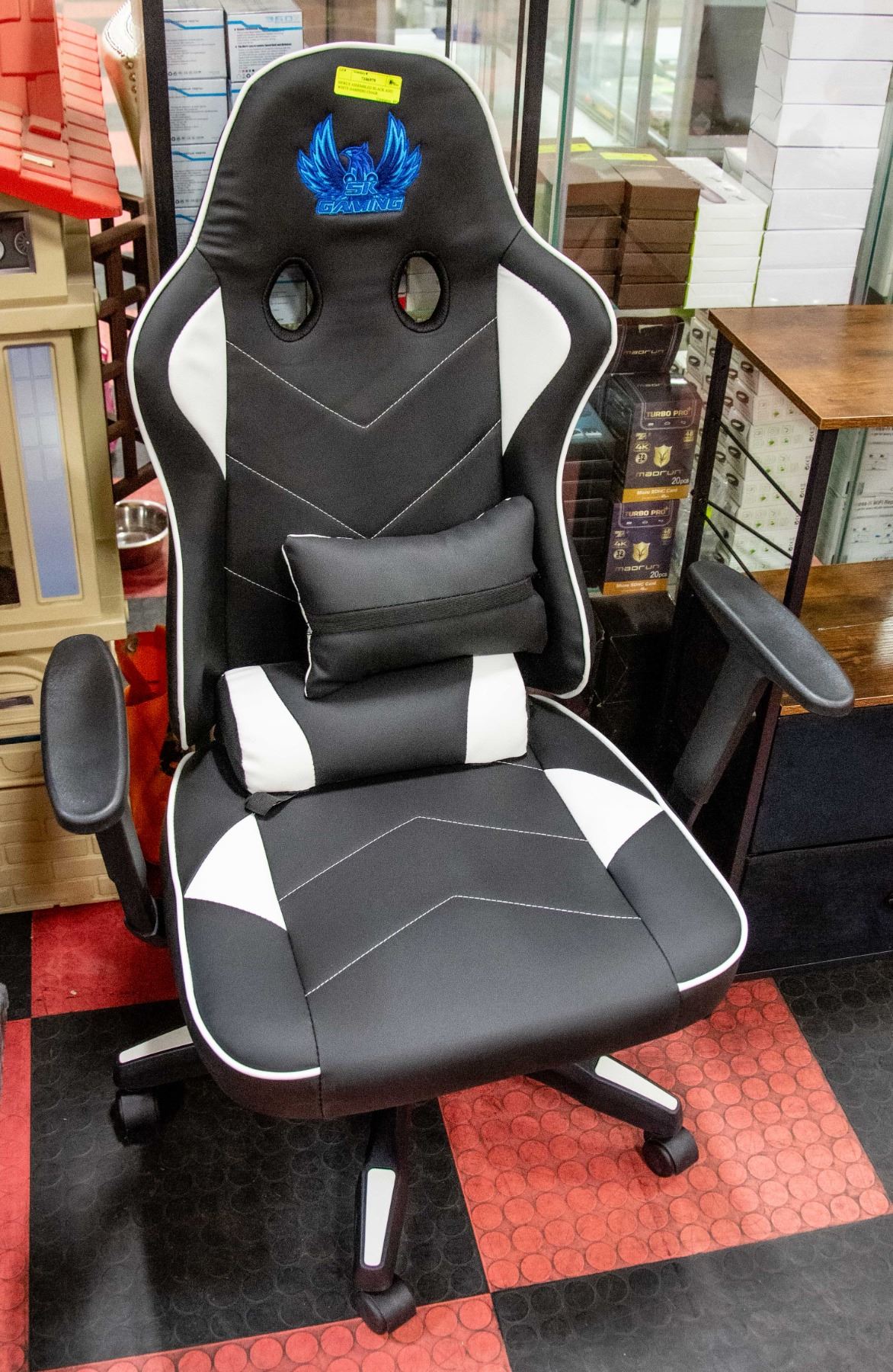 COMPUTER GAMING CHAIR WITH TWO COMFORT PILLOWS, BREATHABLE BACKING, 5 WHEEL BASE, LOW PROFILE SEAT, DOESN'T ADJUST UP
