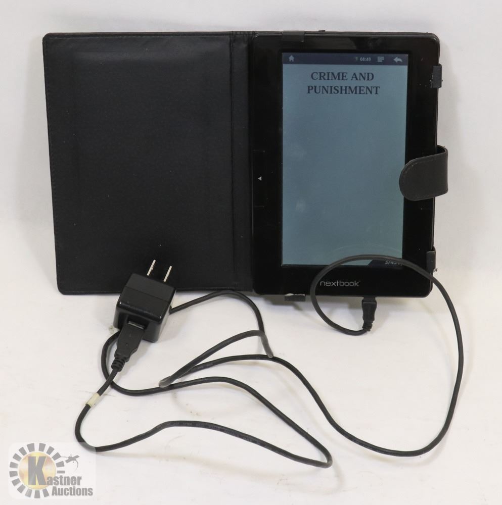 USB CHARGE CABLE. 33 BOOKS PRELOADED INCLUDING MOBY DICK. CONNECTS TO WIFI AND SD CARD. ELECTRONICS