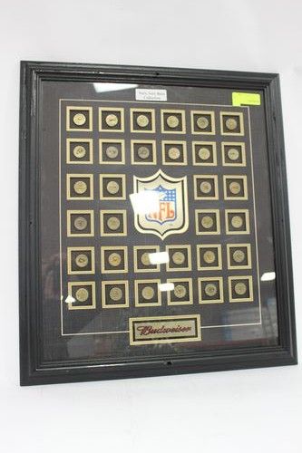 NFL RARE BUDWEISER FRAMED BOTTLE CAP DISPLAY