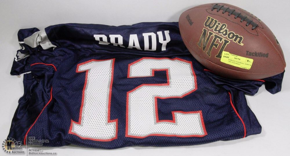 NFL TOM BRADY FOOTBALL SHIRT & WILSON NFL FOOTBALL