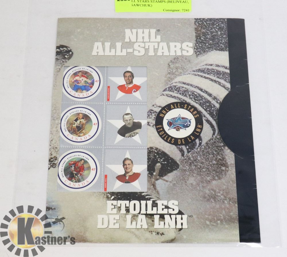 NHL ALL STARS STAMPS (BELIVEAU, HULL SAWCHUK)