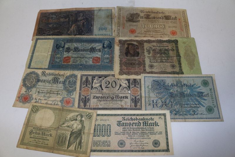 NINE ASSORTED GERMAN BANKNOTES 1906-1922