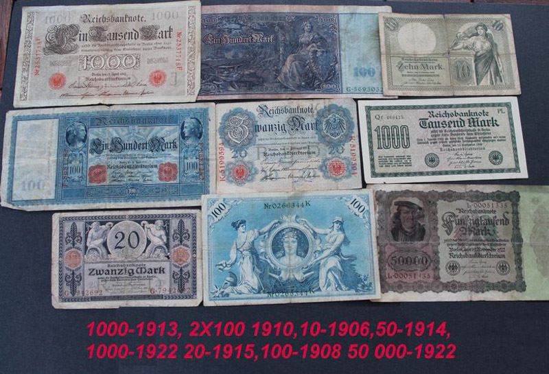 NINE ASSORTED GERMAN BANKNOTES FROM 1906-1922