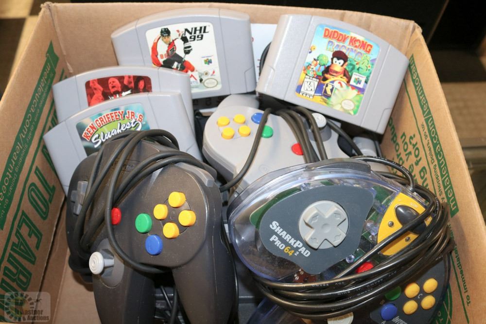 NINTENDO 64 WITH 3 CONTROLLERS, 4 GAMES, CABLES