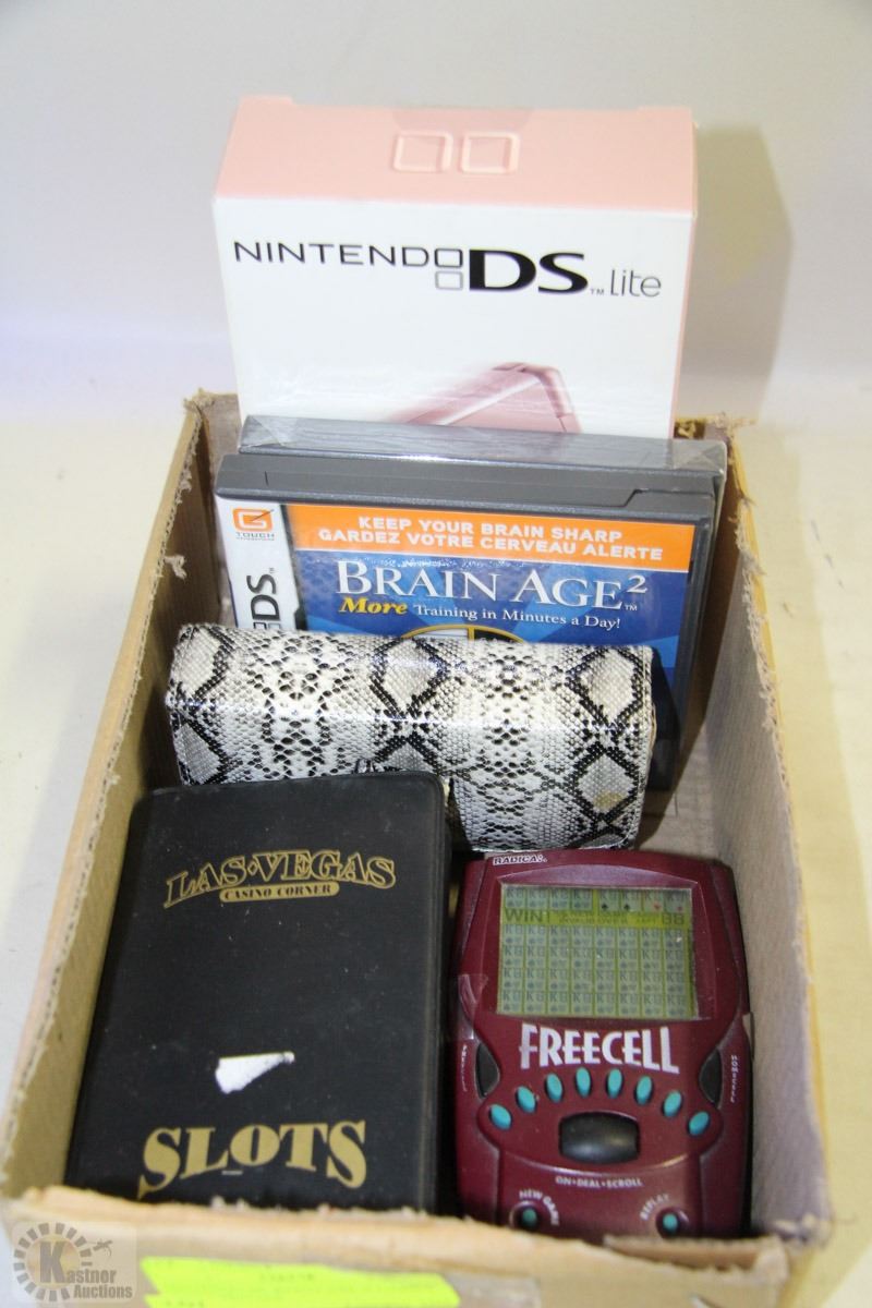 NINTENDO DS WITH CASE ,2 GAMES AND 3 VINTAGE