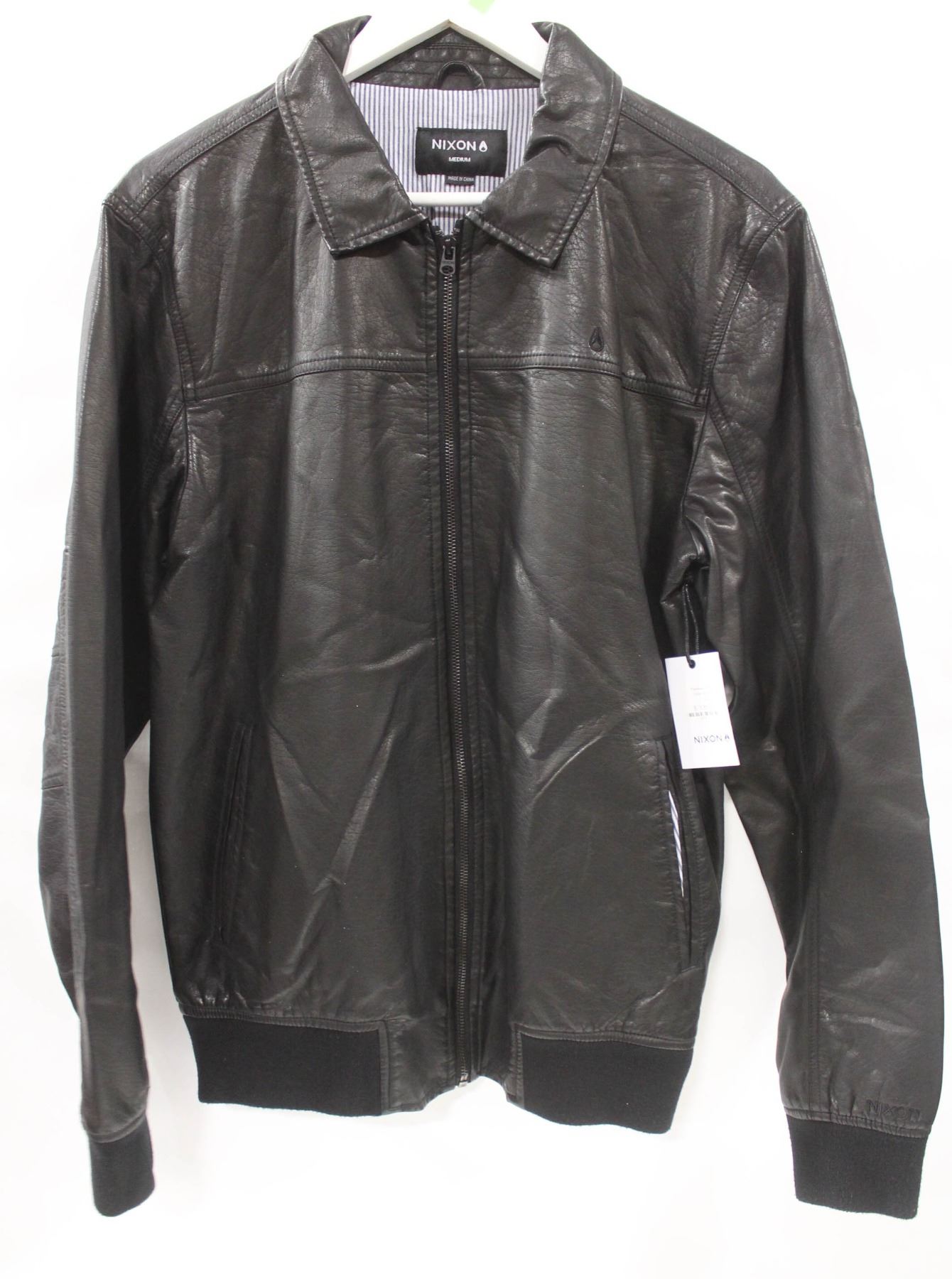 NIXON BLACK PLEATHER ZIP UP MENS JACKET