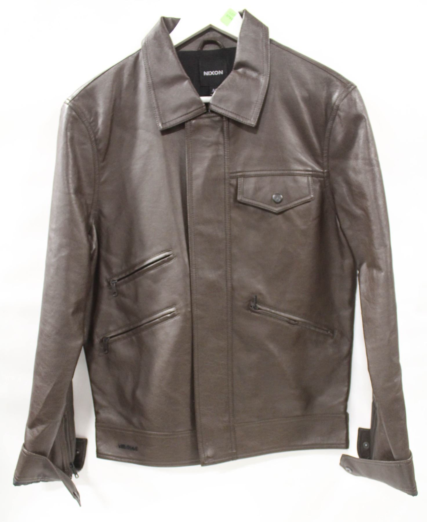 NIXON BROWN PLEATHER ZIP UP MENS JACKET