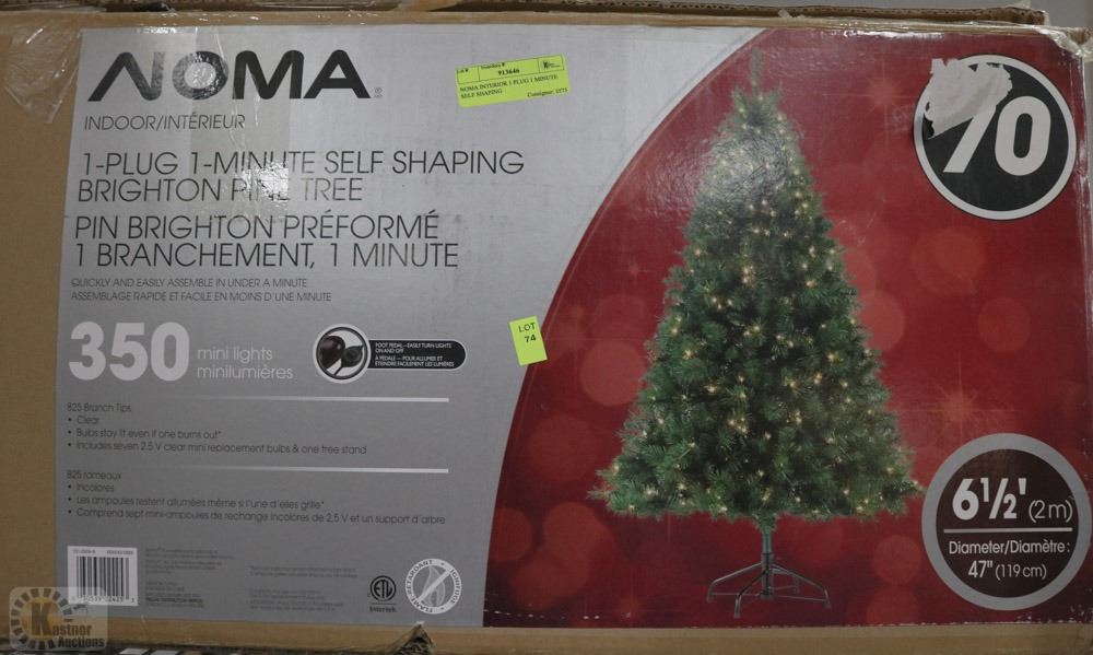 BRIGHTON PINE CHRISTMAS TREE 6.5' WITH A BOX OF CHRISTMAS DECORATIONS