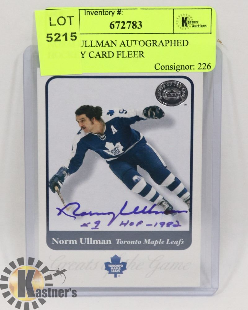 NORM ULLMAN AUTOGRAPHED HOCKEY CARD FLEER