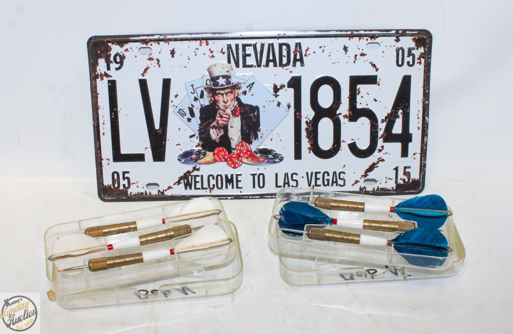 PLATE + TWO 3PKS HARD CASED DARTS **ALL ITEMS MUST BE REMOVED BY 5PM SATURDAY, AUGUST 9 2025. ALL REMAINING ITEMS WILL BE SUBJECT TO A $6.00 PER DAY STORAGE CHARGE. ANY ITEMS REMAINING AFTER MONDAY, AUGUST 25TH 2025 WILL BE CONSIDERED FORFEITED. NO REFUNDS WILL BE ISSUED FOR FORFEITED ITEMS. TO SCHEDULE A PICK UP APPOINTMENT CLICK HERE